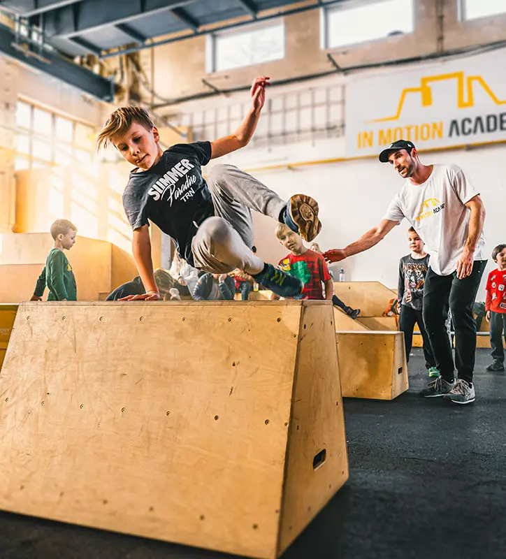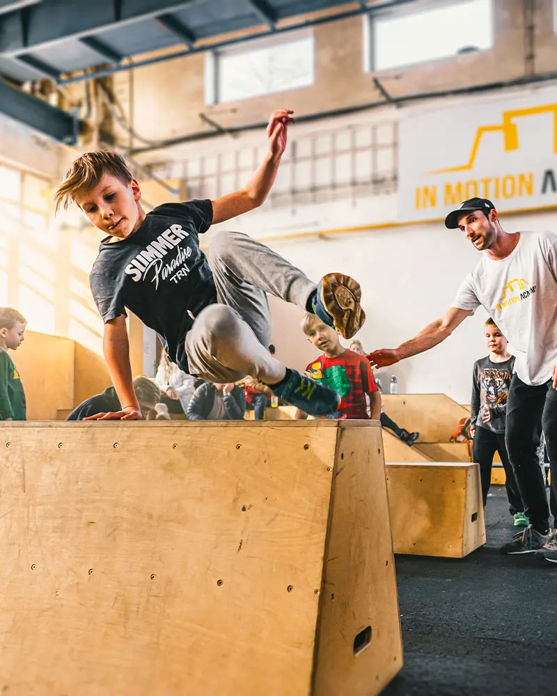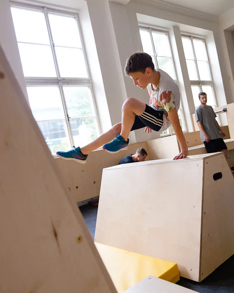 Nemáme žádné tabulky, žádné stroje, žádná zrcadla. Přesto se u nás každý časem mění v silnější, hbitější a odvážnější verzi sama sebe. Parkour je nástroj osobního rozvoje - fyzického i psychického.