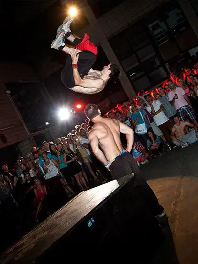 Show plná skoků a salt přes překážky i diváky. Dokážeme vystupovat venku i vevnitř a využít prostor naplno.