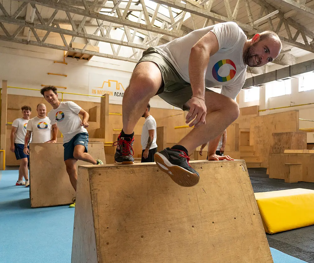 Připravíme pro vás komplexní program ušitý na míru. Koordinační a kooperativní hry, týmové překonávání překážek, přednáška o aplikaci myšlenek parkouru v běžném a profesním životě nebo prostě pořádnou dřinu - to vše a mnohem víc si můžete vyzkoušet v unikátních prostorech IN MOTION Academy.