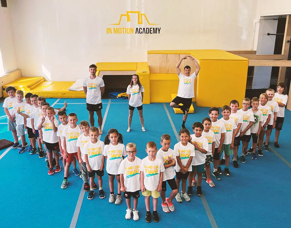 V létě se hala promění na dějiště příměstských táborů, kde se děti učí parkour, ale i další dovednosti a hry.