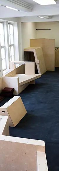 Využíváme každé místo v historické budově Dělnického domu. Tato původně průchodová zóna se proměnila v ráj tyčových konstrukcí.