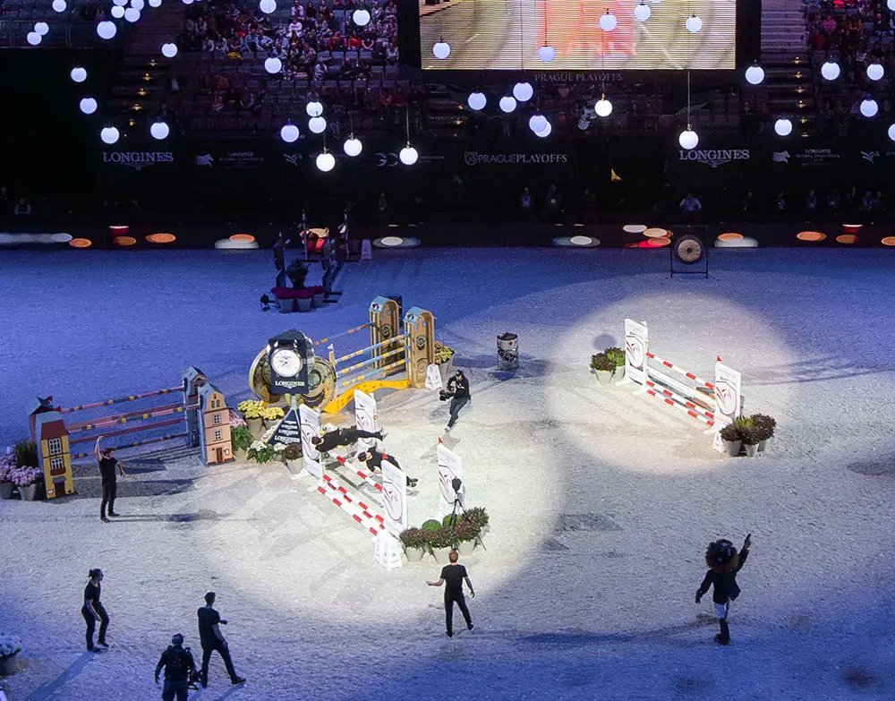 Máme zkušenosti i s velkými vystoupeními, jako je například tato show v O2 aréně při parkurové soutěži Prague Playoffs.