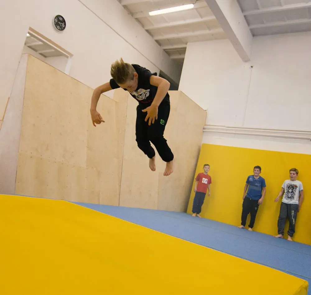 Naše hala je unikátním místěm navrženým pro parkour od architekta a parkouristy Daniela Samka, který stál u zrodu parkouru v ČR.