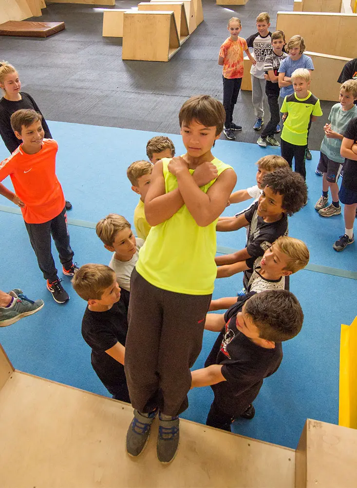 První den se děti společně seznamují. Jednou ze seznamovacích her je i pád důvěry.