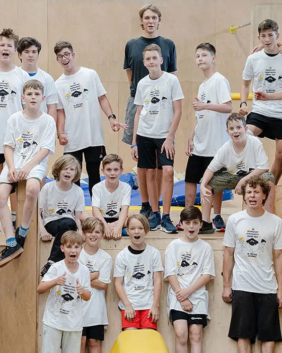 Každý den se sejdeme v 9 hodin ráno v parkourové hale a dáme se společně do tréninku! Budeme hrát sportovní hry, a učit se parkourové pohyby. A aby to mělo pořádné grády, budeme společně v týmech proti sobě vzájemně soutěžit ve velké celotáborové hře s příběhem.